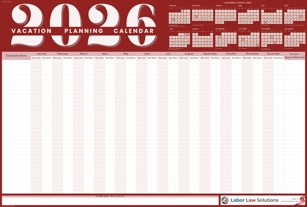 Plan your 2026 vacations with ease using this spacious and visually appealing calendar. Measuring 40 inches by 27 inches, this horizontal calendar provides ample space to mark important dates, trips, and events. The vibrant red design adds a touch of style to any wall, making it both a functional and decorative addition to your home or office.